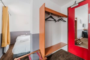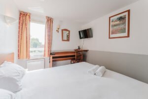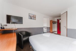 Découvrez notre chambre twin, idéale pour deux personnes cherchant à allier confort et modernité. Équipée de deux lits simples avec literie de qualité, cette chambre offre un espace accueillant et lumineux. Les tons