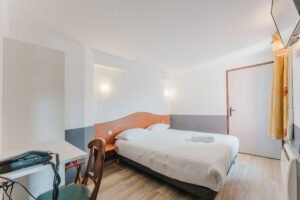 Offrant un espace intime et élégant, notre chambre double est conçue pour assurer votre confort et votre bien-être. Idéale pour les couples ou les voyageurs solitaires, elle dispose d’un grand lit douillet et d’une décoration soignée alliant modernité et charme.